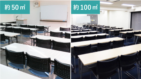 会場規模は50㎡、75㎡、100㎡、120㎡と様々なサイズがございますので、イベント規模に応じての選択が可能です。